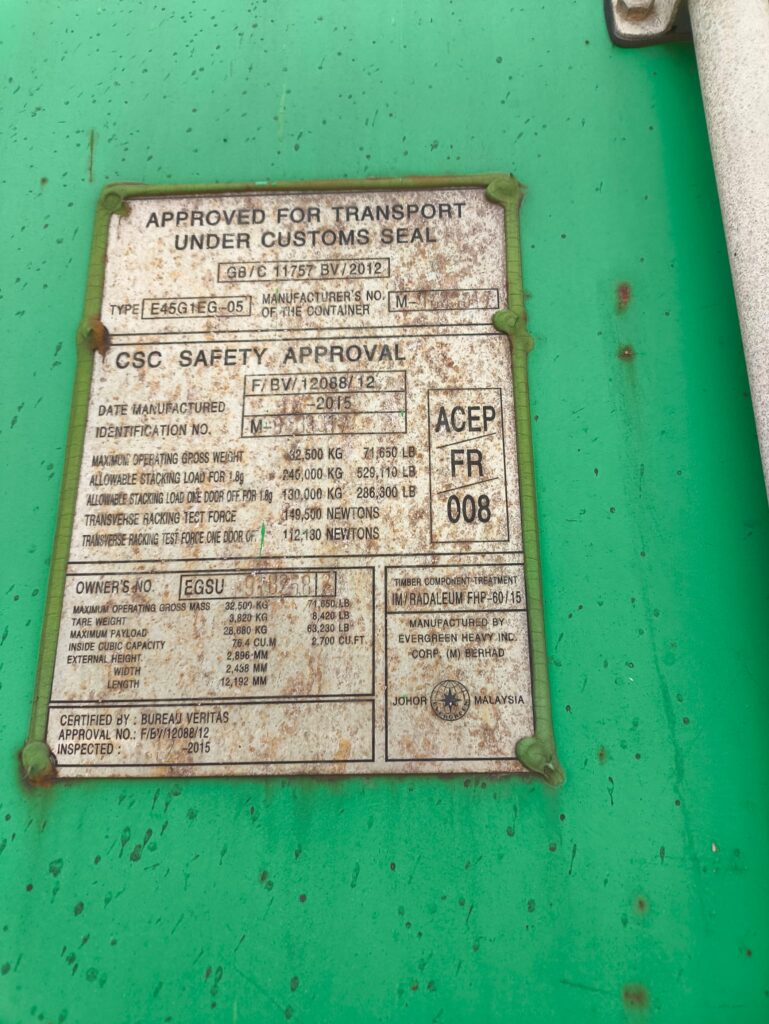 Wymiary zewnętrzne: 12.192m x 2.438m x 2.896m