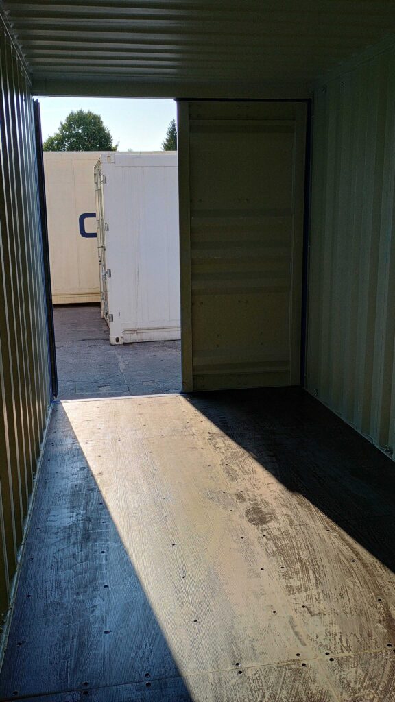 - 40-stopowe kontenery – w tym kontenerze możesz załadować większą ilość towaru do transportu. Klienci często wybierają je jednak do adaptacji na warsztat, garaż, a nawet na przestrzeń biurową.