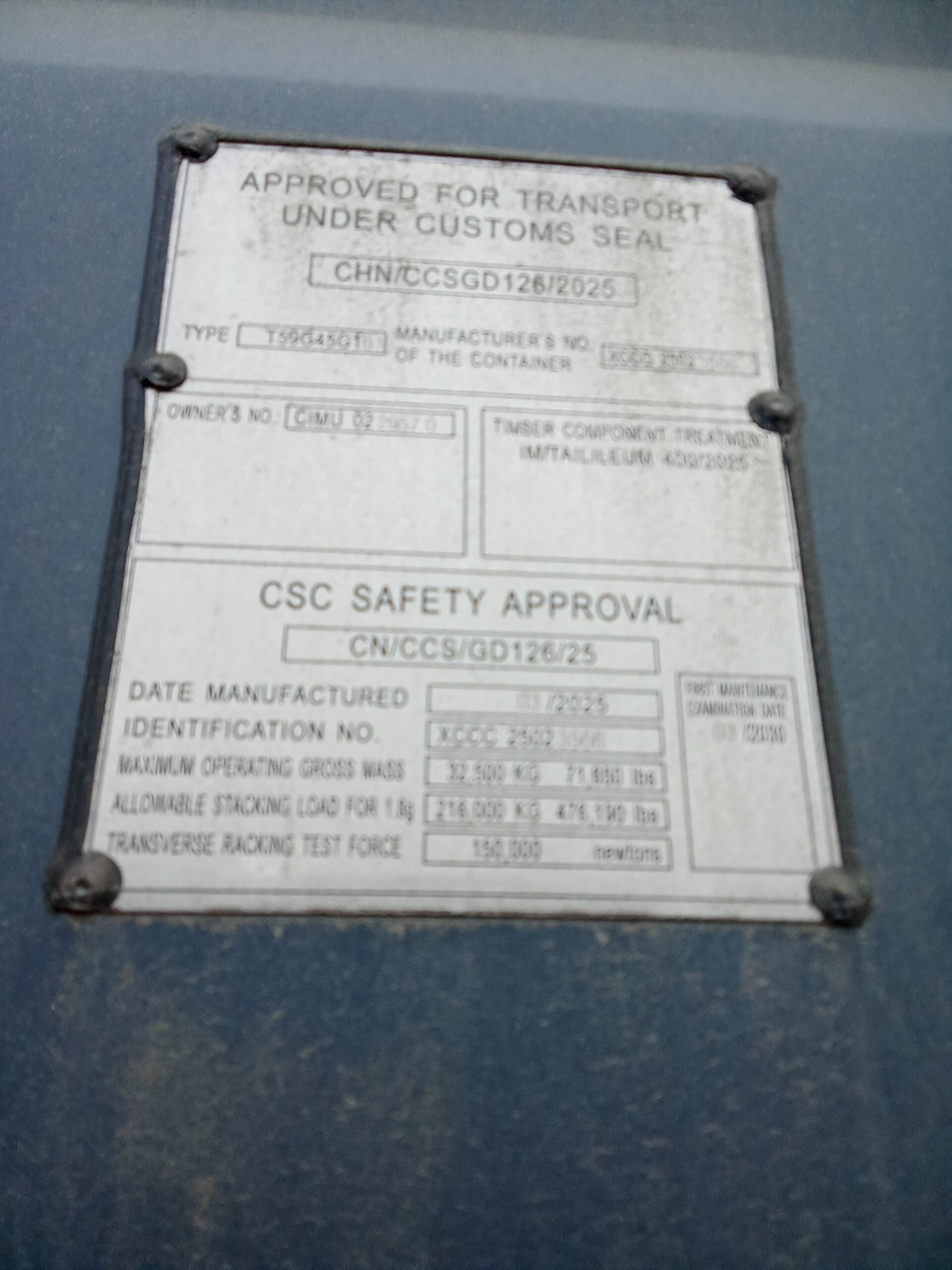| Typ kontenera | 12m/40'HC |