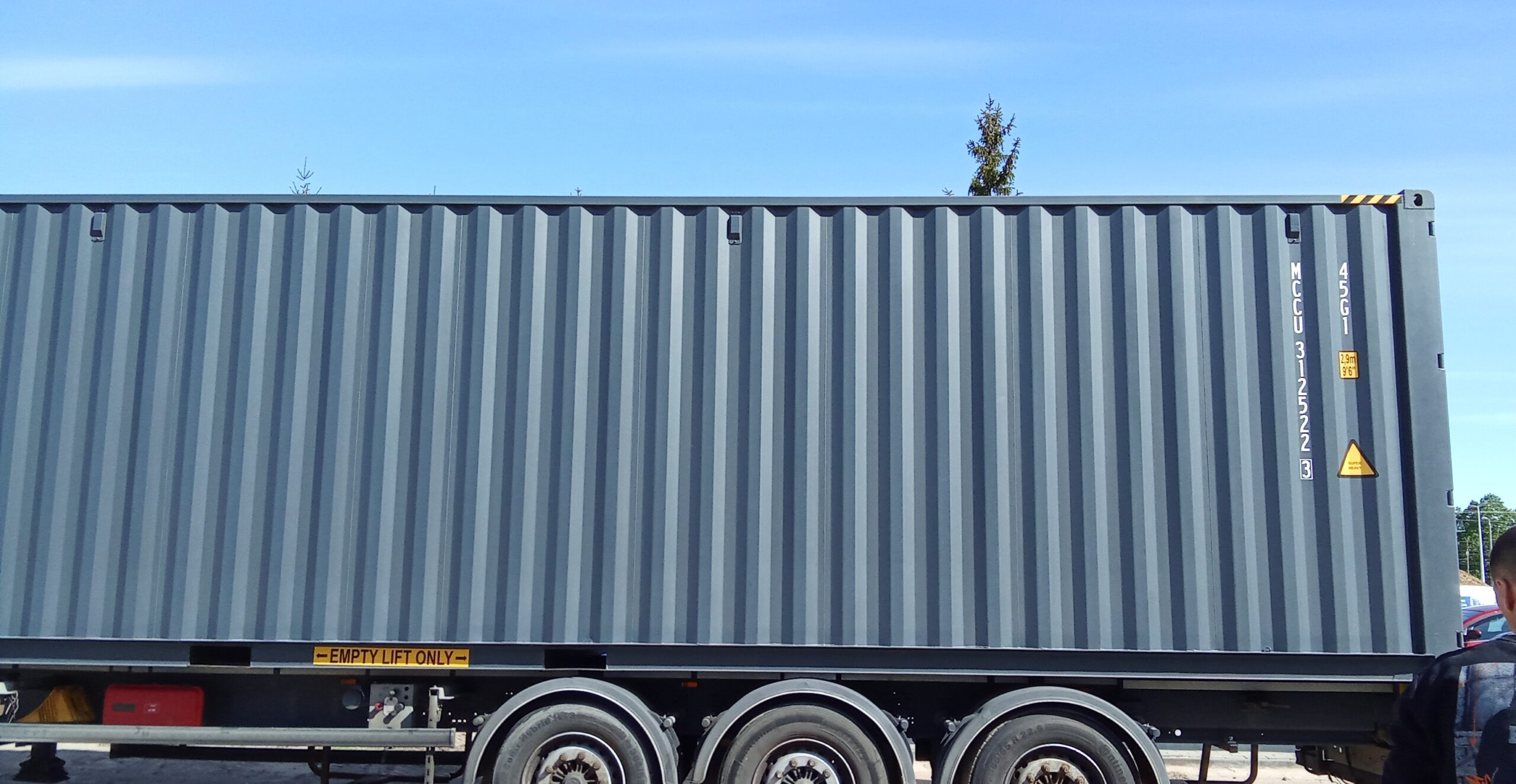 - 40-stopowe kontenery – w tym kontenerze możesz załadować większą ilość towaru do transportu. Klienci często wybierają je jednak do adaptacji na warsztat, garaż, a nawet na przestrzeń biurową.