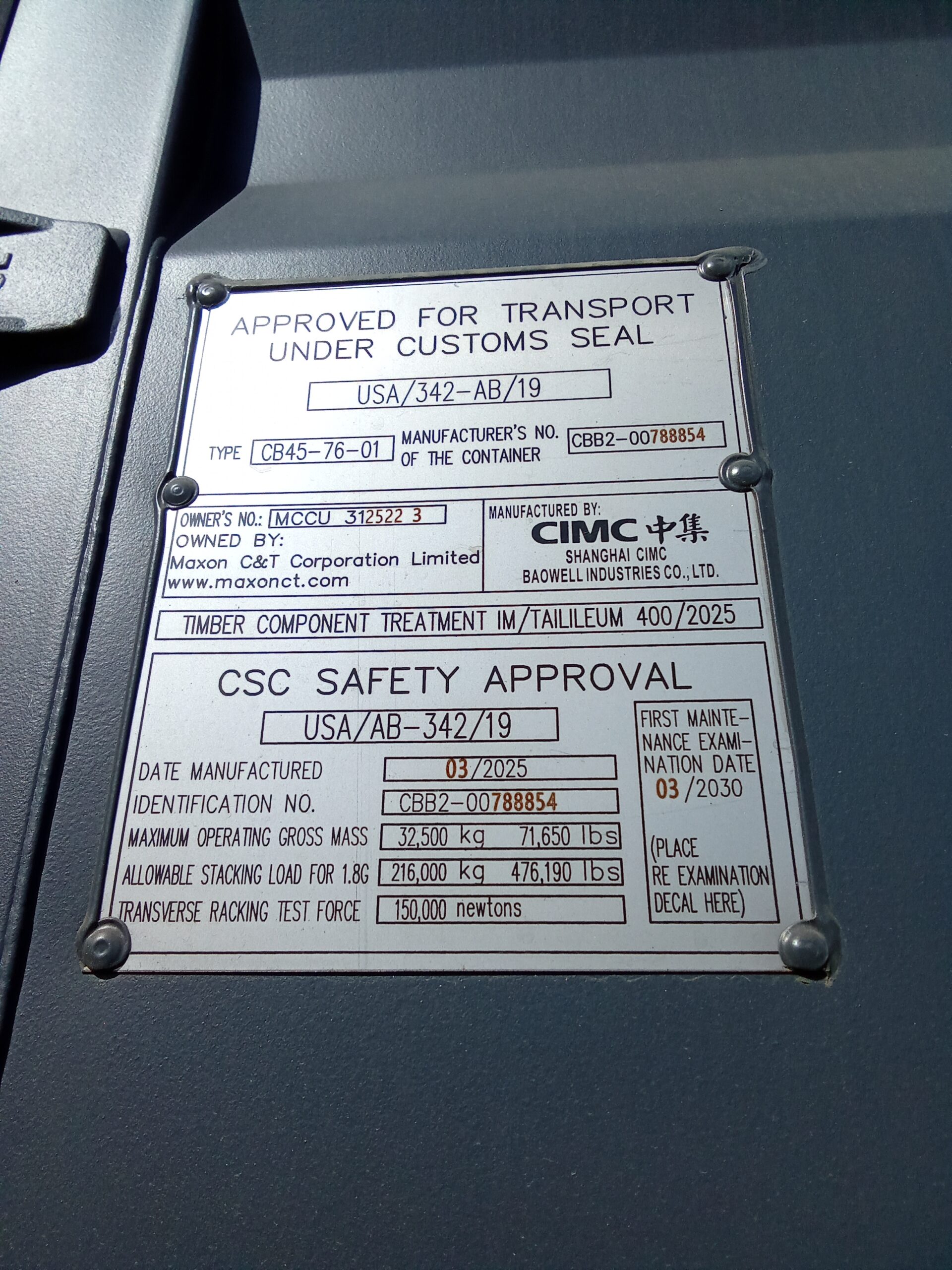 12m (40’HC) Kontener Morski MCCU3125223
