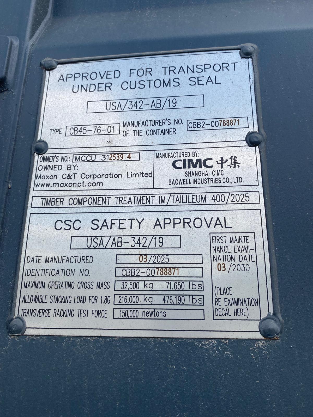 12m (40’HC) Kontener Morski MCCU3125394