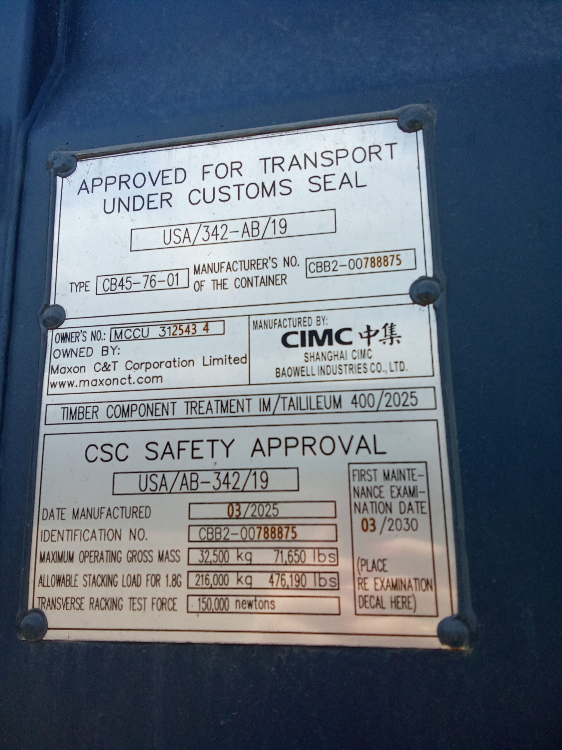 Wymiary zewnętrzne: 12.192m x 2.438m x 2.896m