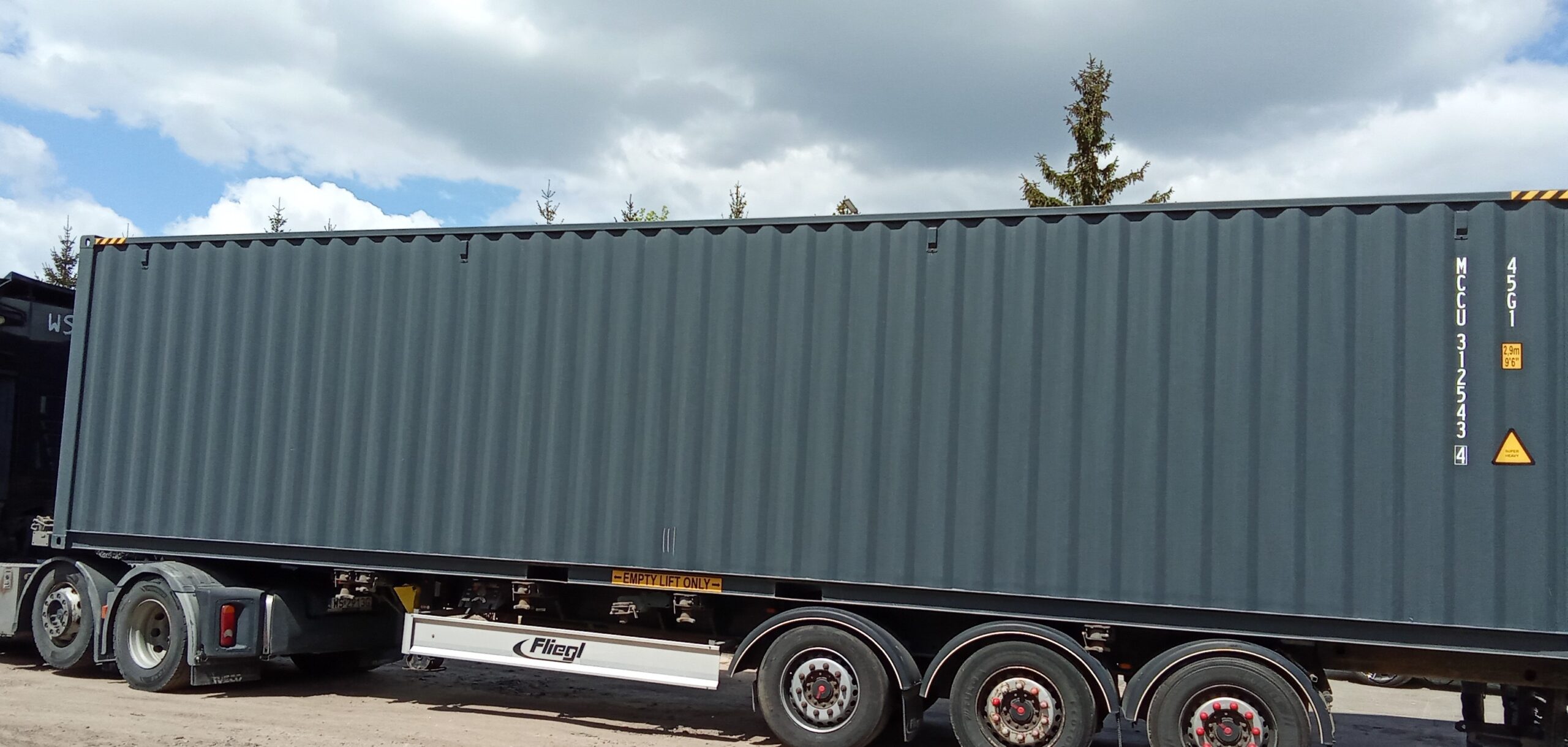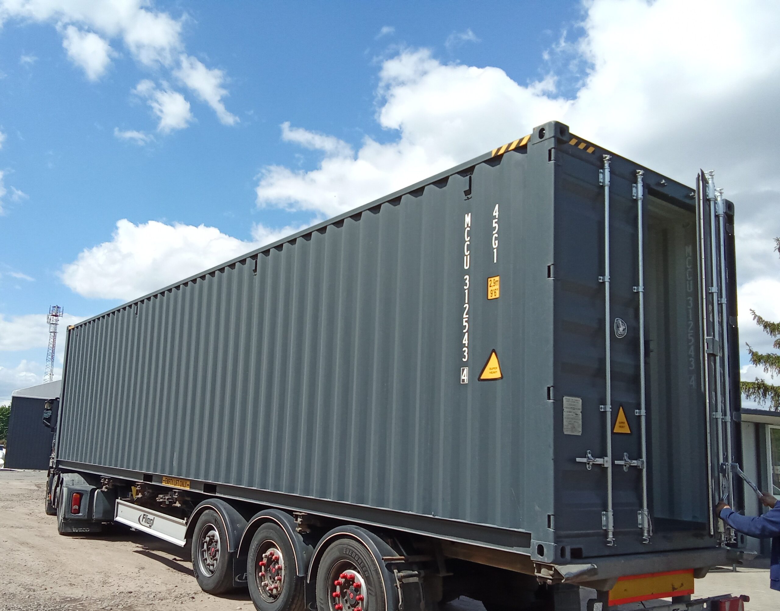 - 40-stopowe kontenery – w tym kontenerze możesz załadować większą ilość towaru do transportu. Klienci często wybierają je jednak do adaptacji na warsztat, garaż, a nawet na przestrzeń biurową.