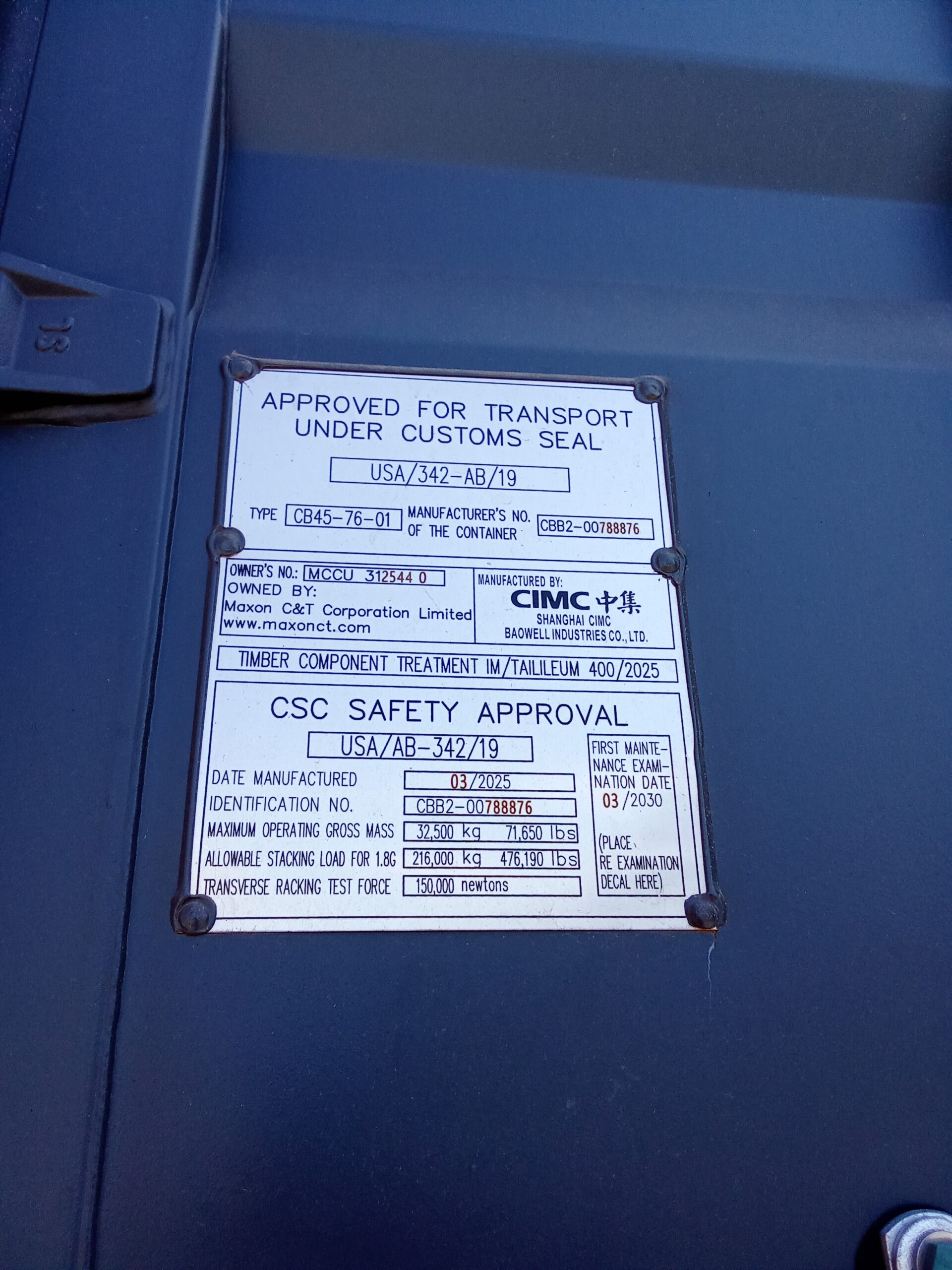 12m (40’HC) Kontener Morski MCCU3125440