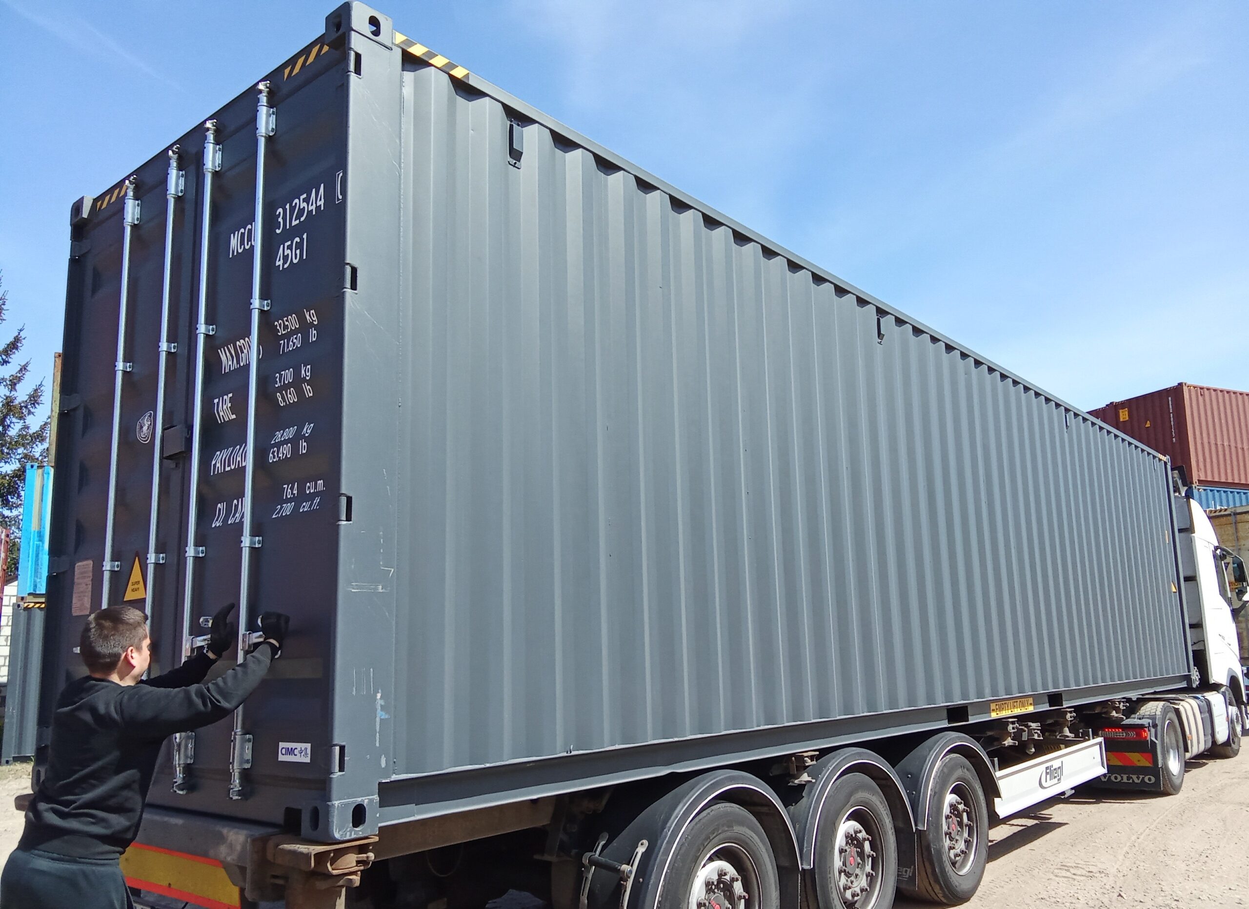 - 40-stopowe kontenery – w tym kontenerze możesz załadować większą ilość towaru do transportu. Klienci często wybierają je jednak do adaptacji na warsztat, garaż, a nawet na przestrzeń biurową.