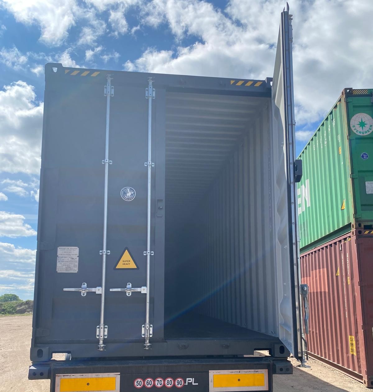 - 40-stopowe kontenery – w tym kontenerze możesz załadować większą ilość towaru do transportu. Klienci często wybierają je jednak do adaptacji na warsztat, garaż, a nawet na przestrzeń biurową.