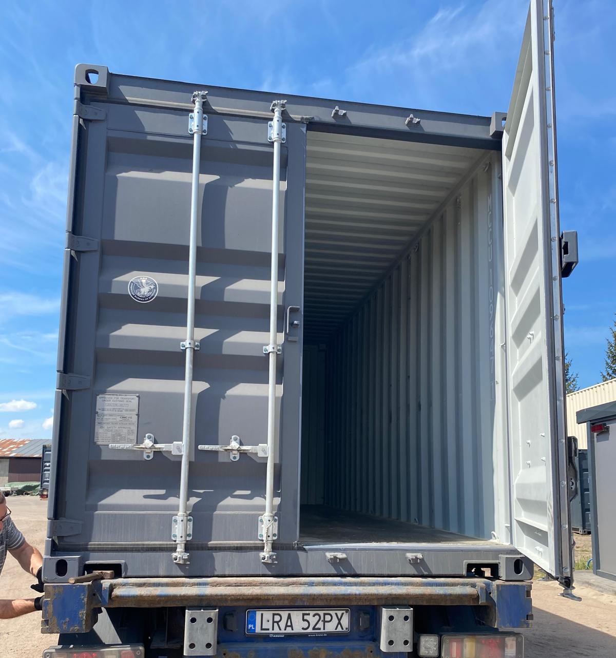 - 40-stopowe kontenery – w tym kontenerze możesz załadować większą ilość towaru do transportu. Klienci często wybierają je jednak do adaptacji na warsztat, garaż, a nawet na przestrzeń biurową.
