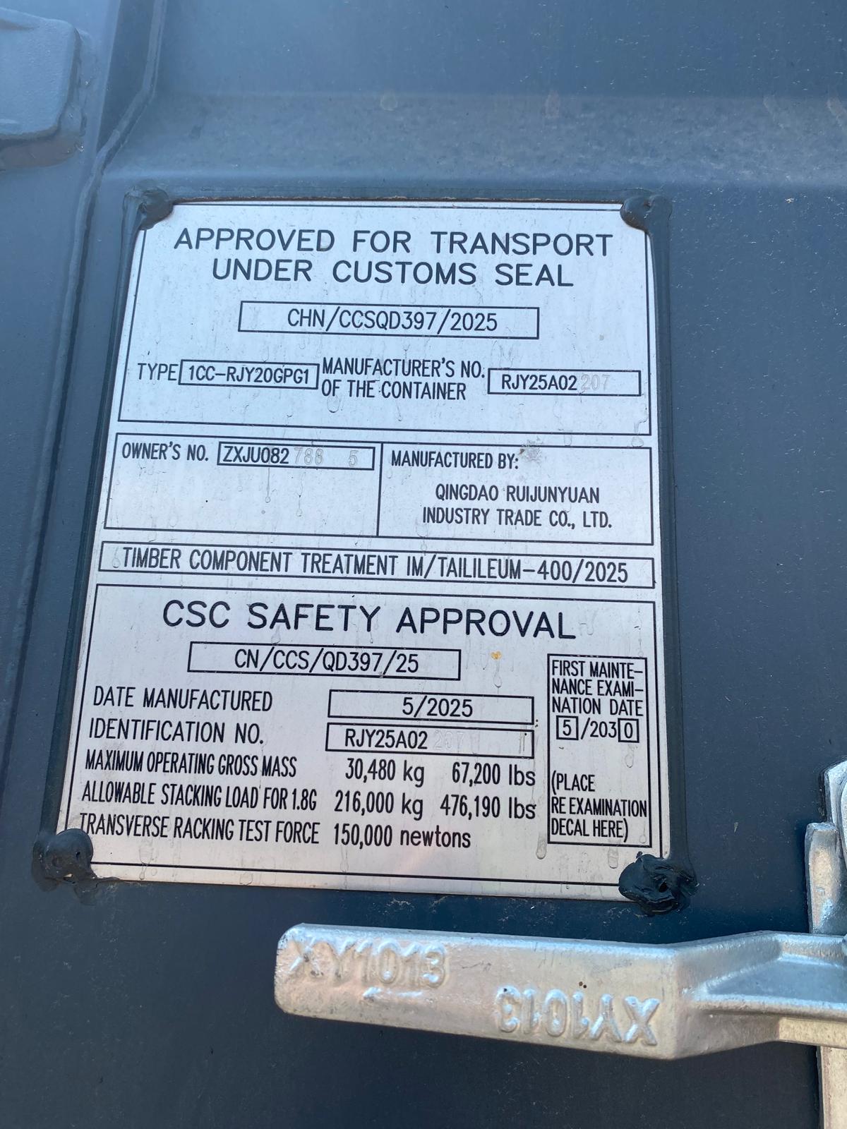 6m (20’DC) Kontener Morski ZXJU0827885